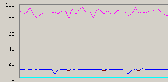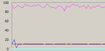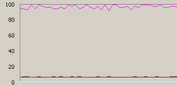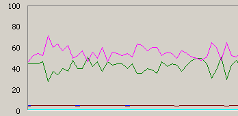 Давайте посмотрим на графики PerfMon по трем серверам (InterBase 7.5 и 2007 в этом плане идентичны, как вы уже убедились выше. Графики по Yaffil не приведены т.к. идентичны Firebird 1.5, за исключением более высокого disk transfer rate):