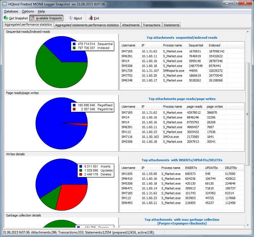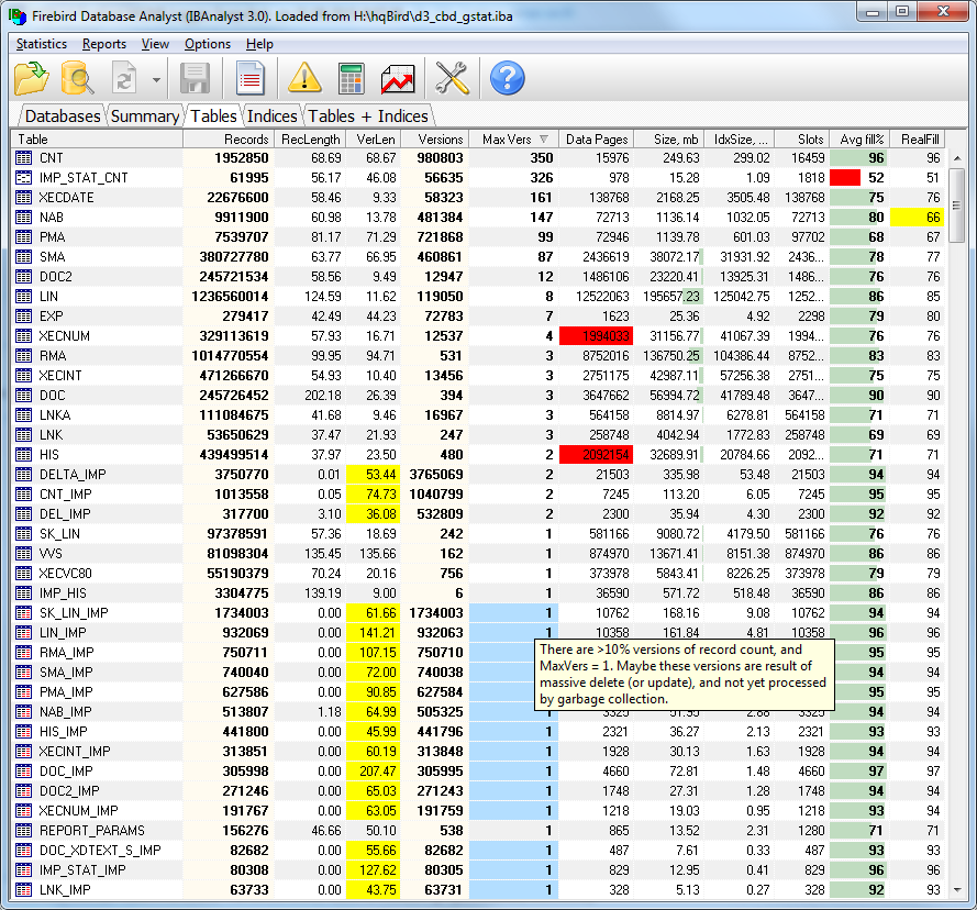 | IBAnalyst | Инструмент для анализа статистики базы данных. Показывает состояние транзакций, фрагментированные таблицы, индексы, версии и многое другое. Выводится список рекомендаций по состоянию БД и улучшению производительности. Справка содержит полное описание выводимой информации и две статьи по состоянию транзакций и правильному сбору статистики. ibanalyst_r.zip (800k), iBase |