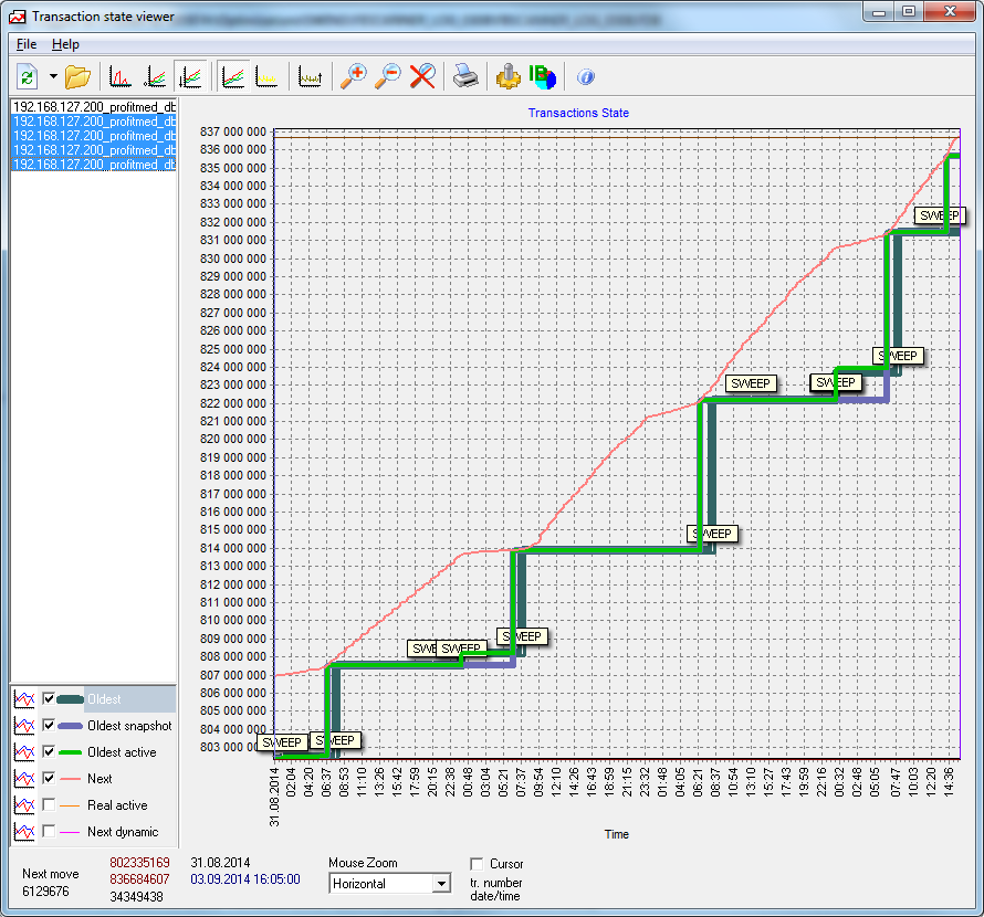 | FBScanner | Инструмент для мониторинга сетевого трафика между клиентом и сервером Firebird и InterBase. Позволяет просматривать запросы, находить клиентов, стартовавших долгоживущие транзакции, определять причины обрывов соединений и т. п. |