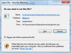 Убедитесь, что HQbird Server-Side подписан сертификатом iBase.ru и запустите его: