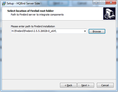 После этого установщик попросит Вас уточнить папку, в которой установлен Firebird: