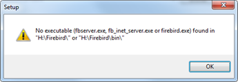 Figure 6. This warning from installation wizard tells you to select a correct folder with Firebird