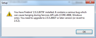 Figure 7. This warning tells that Firebird should be updated