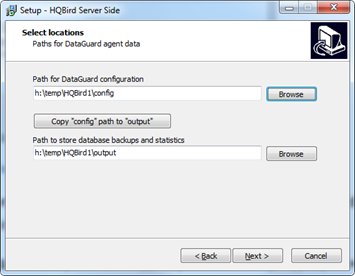 Figure 8. Choose folders for HQbird configuration files and output (logs)