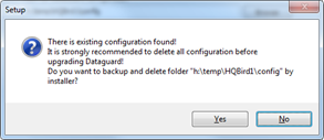 Figure 9. Warning about existing configuration